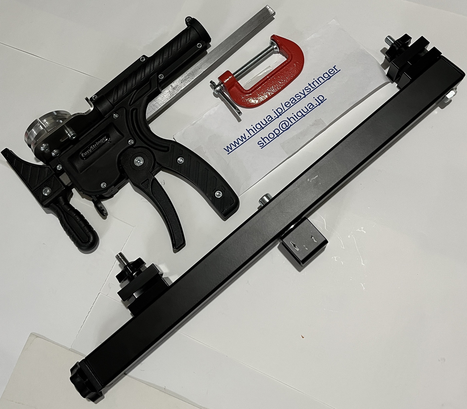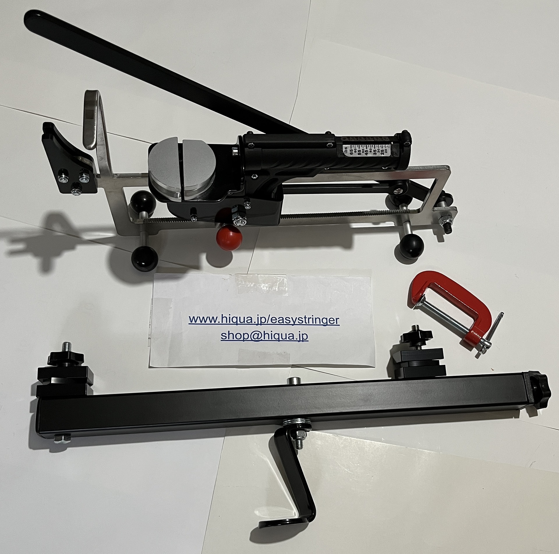 EasyStringerは組み合わせ自由! コンスタントテンションプル機能付きピストルテンションヘッドは他社ガット張り機と併用可能!